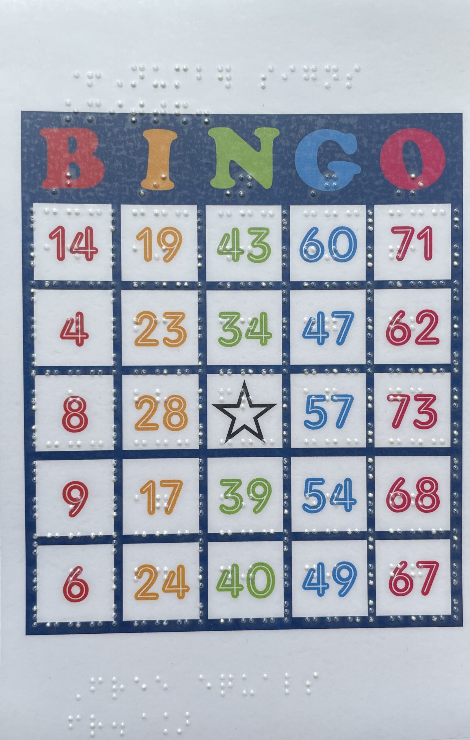 Our Braille games are hand-made by our volunteers. Braille playing cards are $10 per deck. Braille Uno cards are $20 per deck. Braille Bingo cards are $30 per set of 10 cards. To order games, please contact us at: